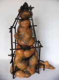 Ditirambo II.1.2015, Cerámica esmaltada y metal. 15 X 20 X 40 cm