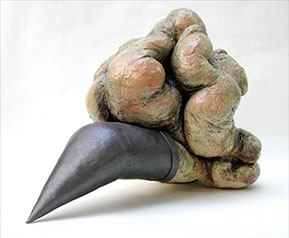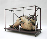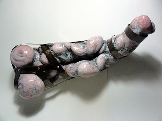 Ditirambo II.3.2015, Cerámica esmaltada y metal. 15 X 20 X 40 cm