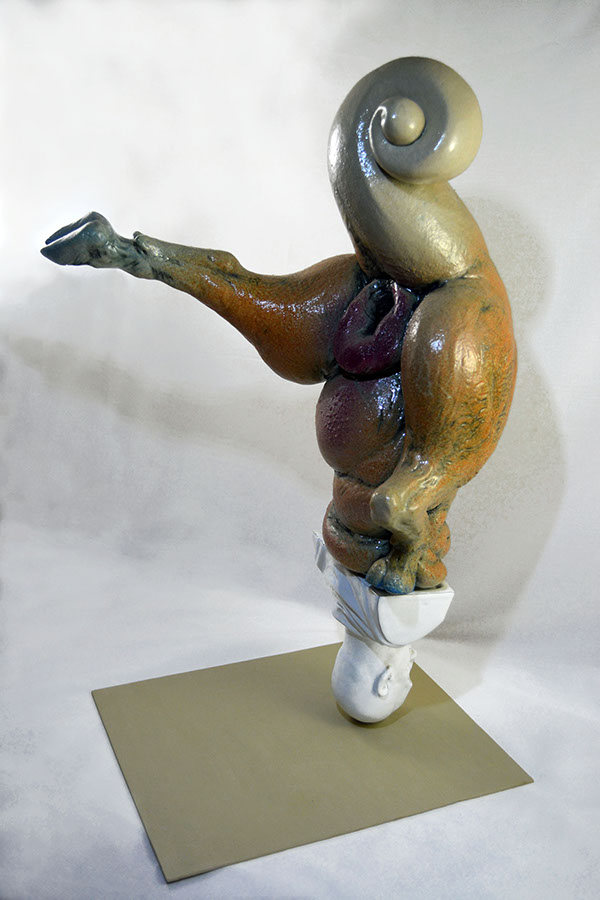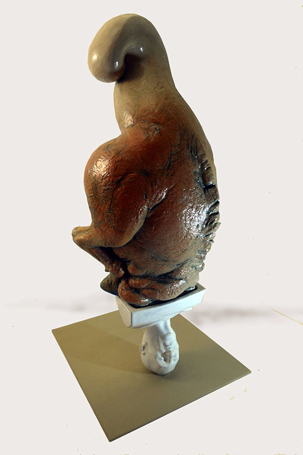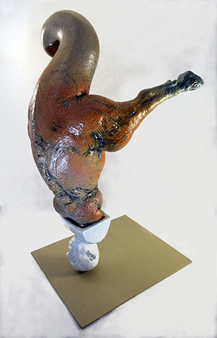 Ditirambo II.2.2015, Cerámica esmaltada y metal. 15 X 20 X 40 cm