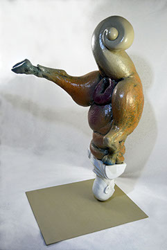 Baubo I, 2017, cerámica esmaltada y metal, 70 X 35 X 45 cm
